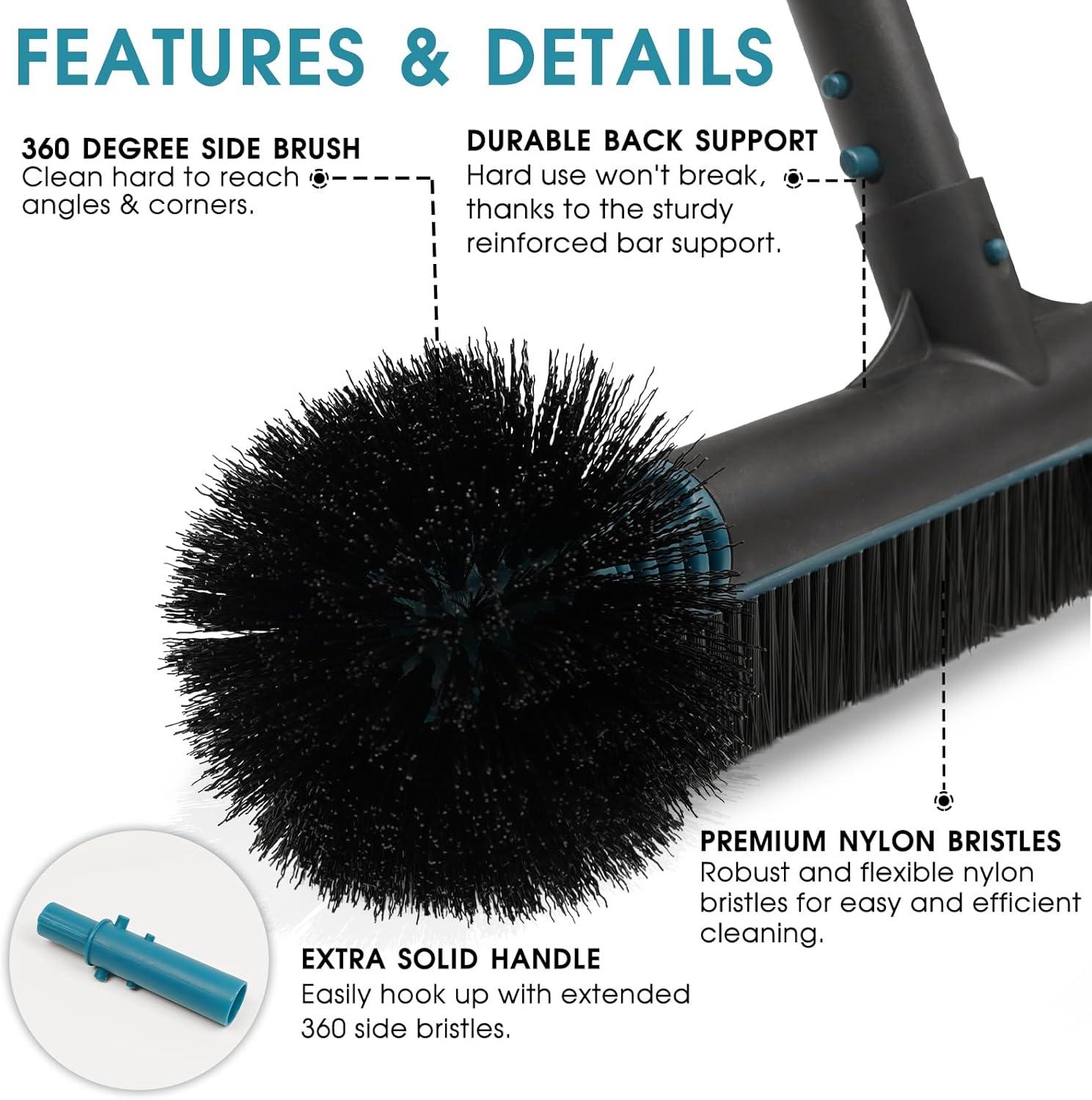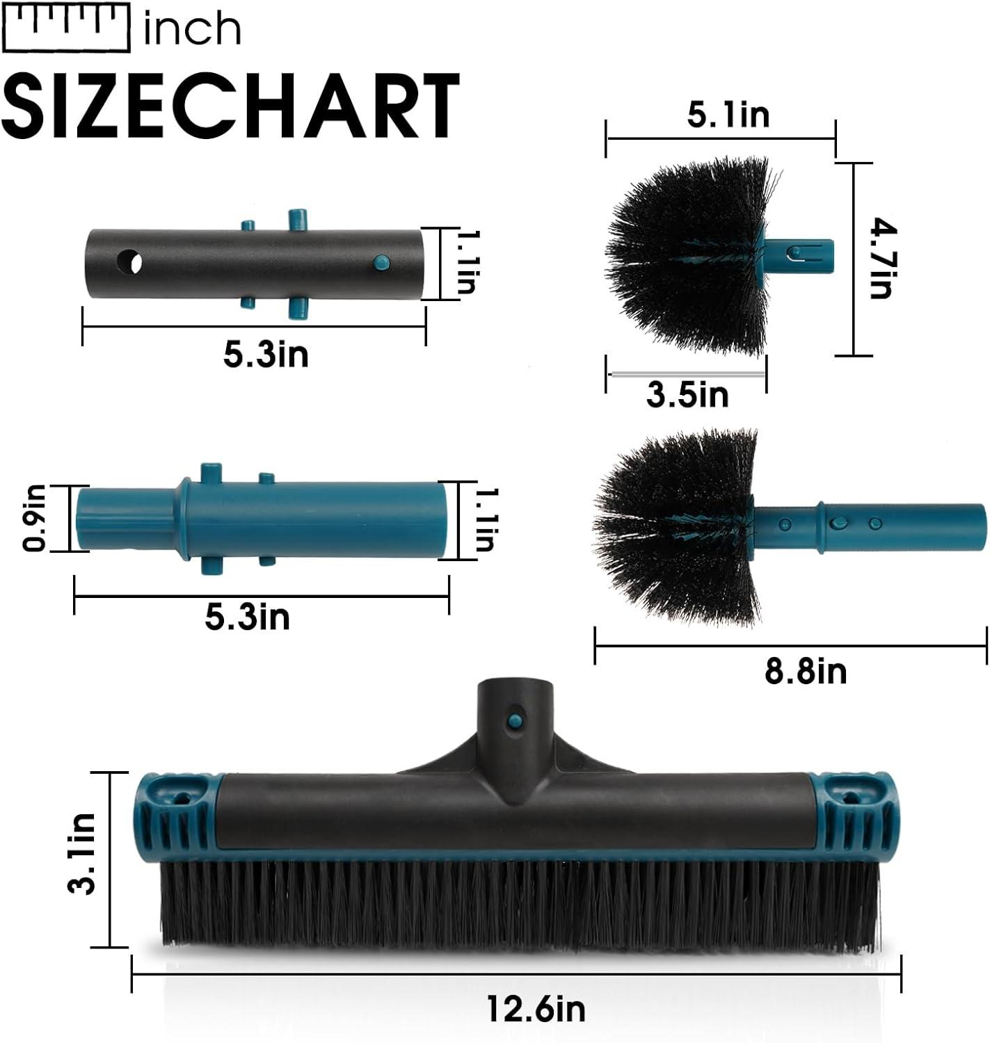 【Ultra 3X Fast Cleaning】The wavy bristles on the sides are tough enough to scrub away stubborn stains and contaminants from the hard corner of our pool, spa, hot tub and yard , leaving it clean and krystal clear. With a separate handle, it can easily hook up with the side brush allowing you to switch between pool cleaning and spider web removal freely exploring versatil applications. saving you time and money