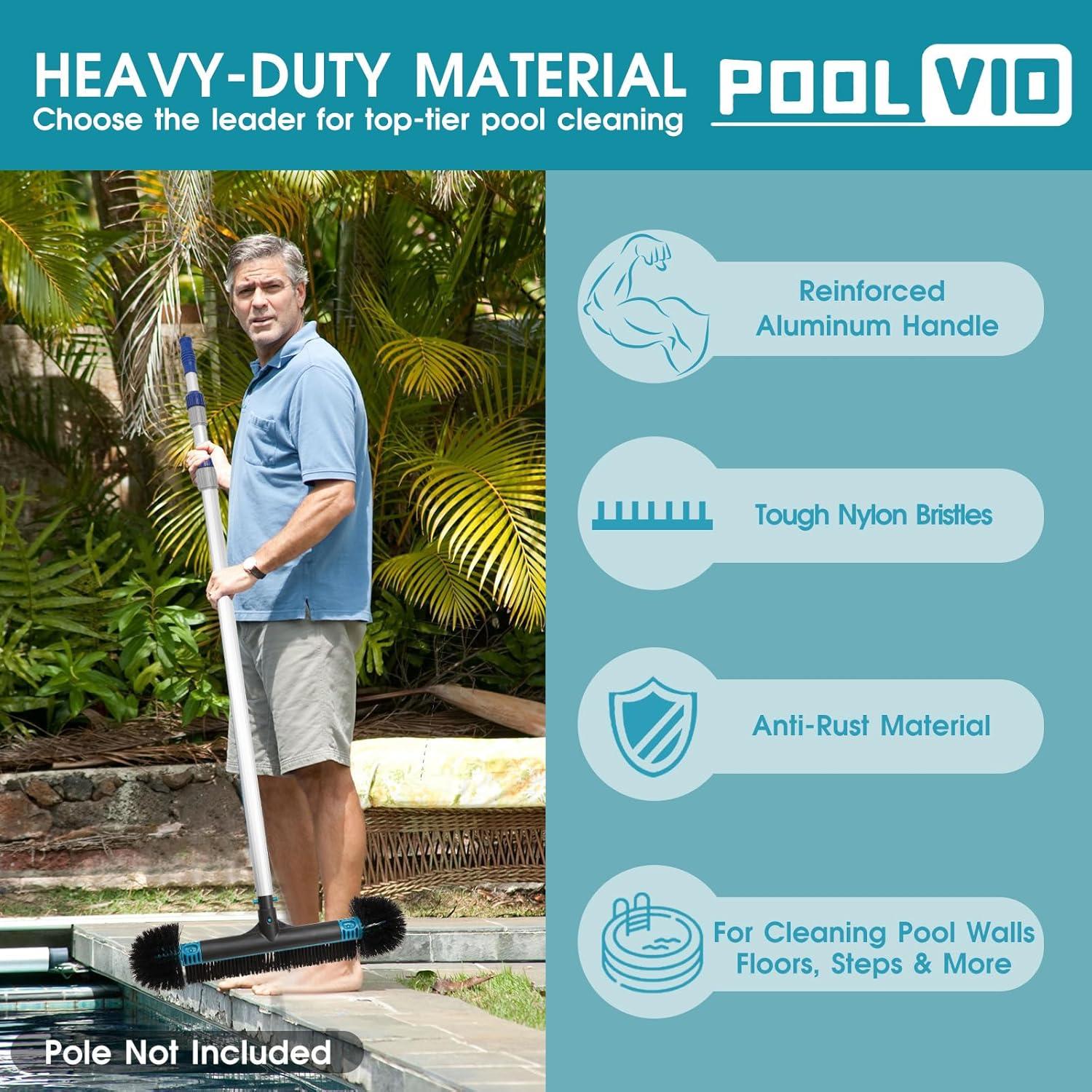 Generic Poolvio 20″” 2 in 1 Pool Brush Head for Swimming Pool, Heavy Duty Scrub Brush with EZ Clip & Wavy Nylon Bristles for Cleaning Pool Walls, Floors, Steps (Pole not Included), Blue+black