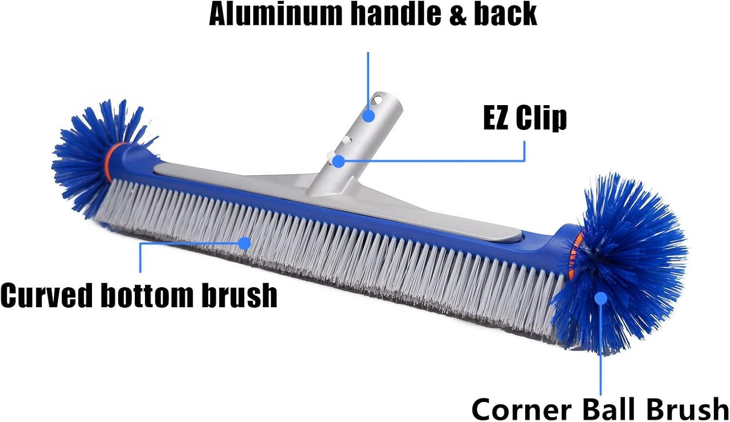 Measuring 17.5″ wide, the pool wall brush deluxe provides a large sweep area for quicker cleaning. Trouble-free and safety EZ clip of swimming pool brush, prevent your fingers from getting pinched while attaching or detaching a telescopic pole, 1-1/4 Pole connection tackles hard to reach places