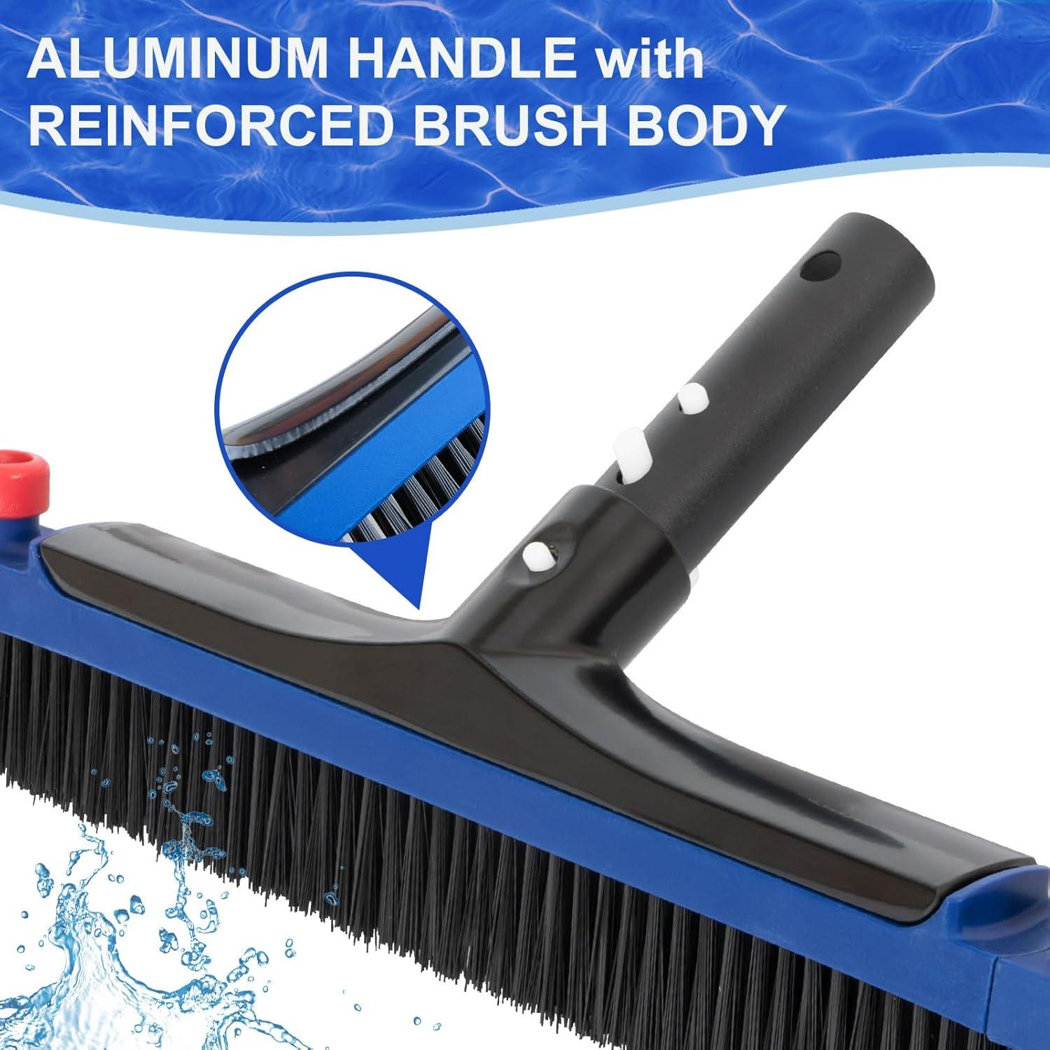 Aluminum Handle: The pool brush features a durable aluminum handle that provides strength and stability, making pool cleaning effortless