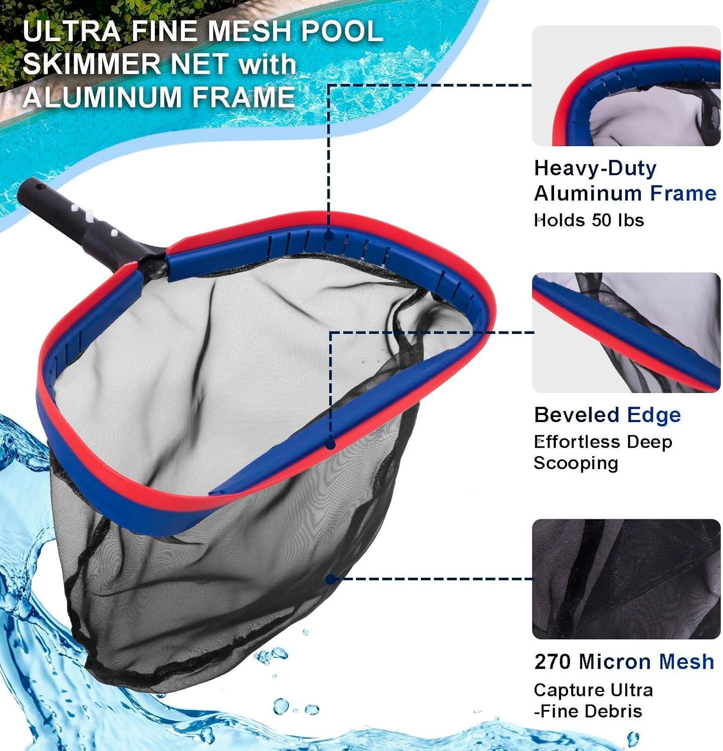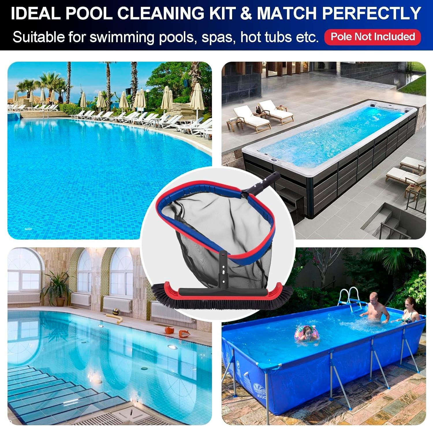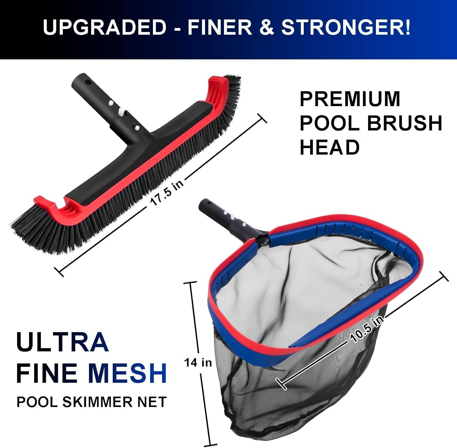 Premium Pool Cleaning Kit: Includes ultra fine mesh pool skimmer net and heavy-duty pool brush head for inground pools & above ground pools. Fits standard pool poles (not included).