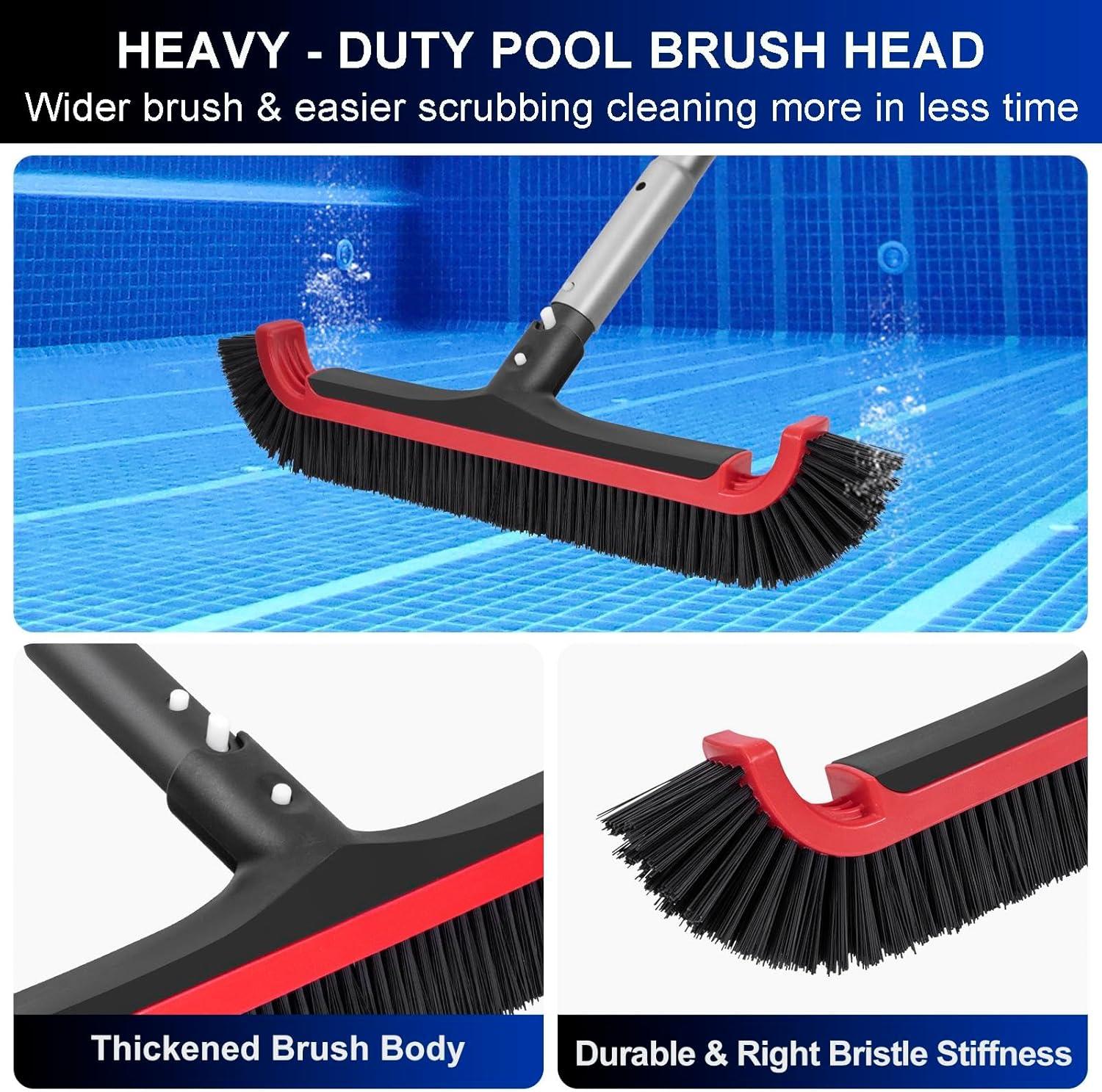 Stiff-Bristle Pool Brush Head: Heavy-duty pool brush with a wide cleaning surface and curved edges for deep scrubbing of pool walls, floors, and corners.