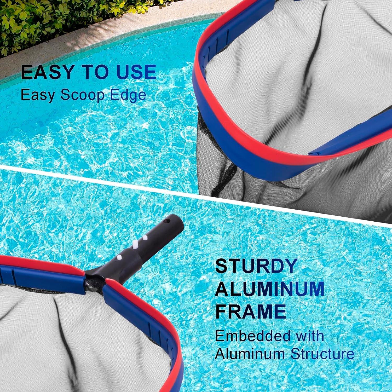 POOLAZA Pool Net and Brush, Fine Mesh Pool Skimmer Net and Heavy Duty Pool Brush Head, Durable Pool Brush & Pool Leaf Net with Aluminum Frame & Handle, Deluxe Pool Cleaning Kit Fit Standard Pool Pole