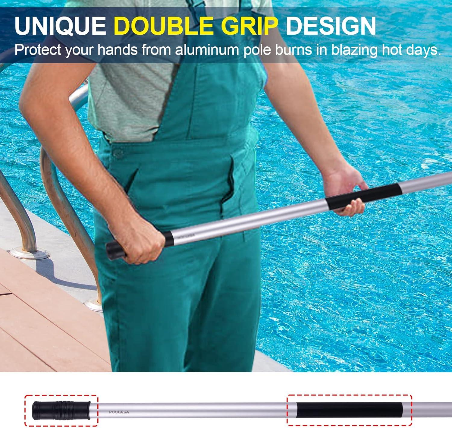 POOLAZA Pool Pole 16ft Heavy Duty, Detachable Swimming Pool Pole with User-Friendly Double Grip, Anodized Aluminum Pool Cleaning Pole, 4 Sections Super Sturdy Pool Poles for Cleaning