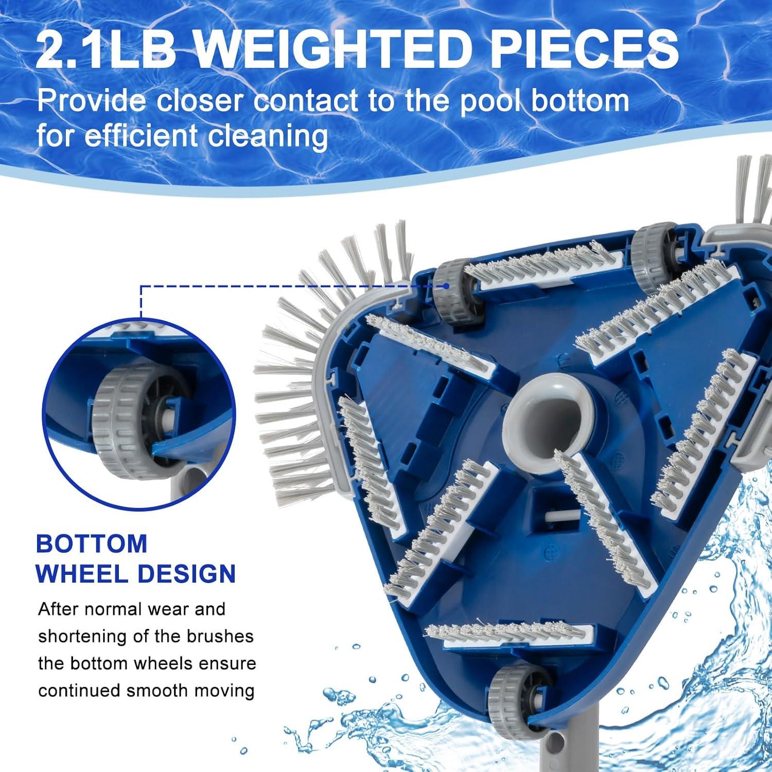 BOTTOM WHEELS: Equipped with wheels at the bottom, our pool vacuum head ensures smooth movement and consistent performance, even after regular wear on the bottom brushes