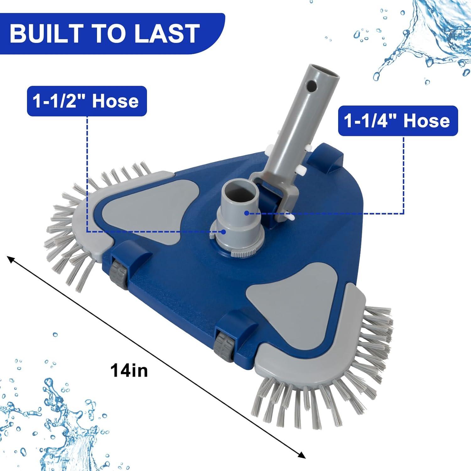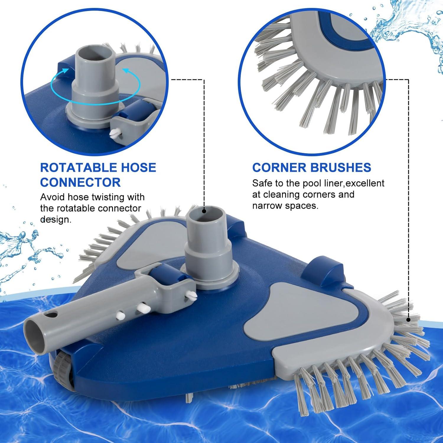 SIDE BRUSHES: Featuring side brushes designed with your pool liner's safety in mind, our pool vacuum head effectively cleans corners and narrow spaces, ensuring thorough cleaning with no area left untouched