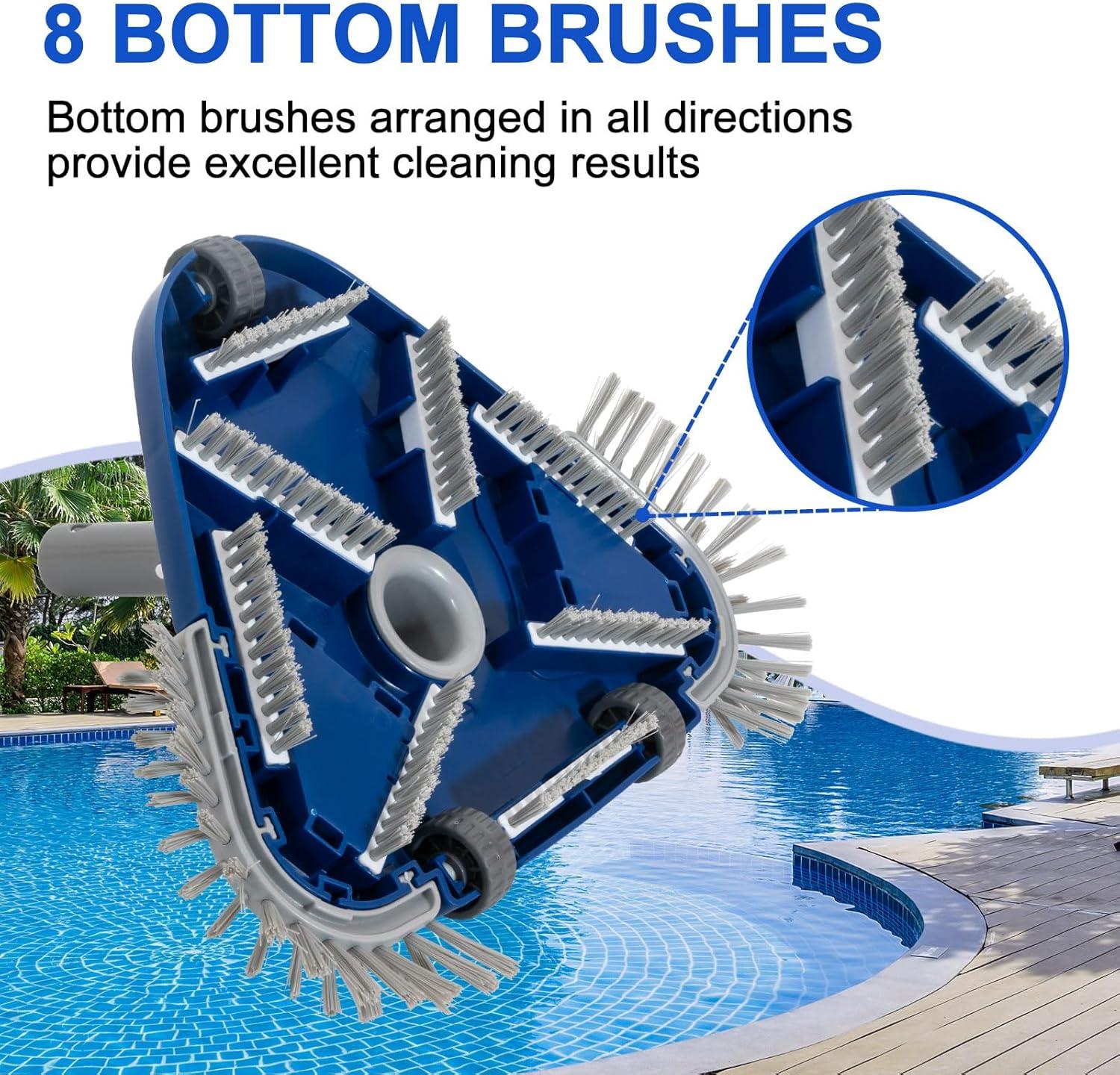 BOTTOM BRUSHES: With 8 strategically positioned bottom brushes, our pool vacuum head guarantees comprehensive cleaning from all angles, delivering impeccable results with every use
