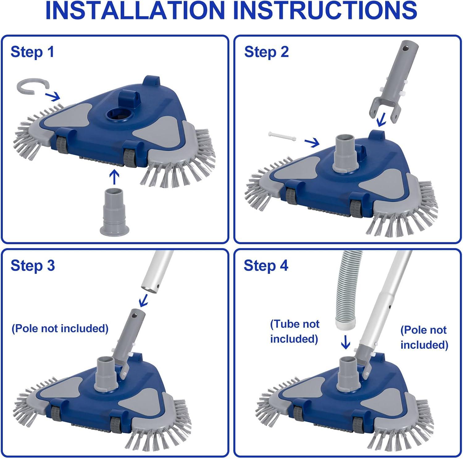 EASY TO FIT POLE: Effortlessly attachable to standard pool poles, our pool vacuum head features an EZ CLIP handle for easy fitting
