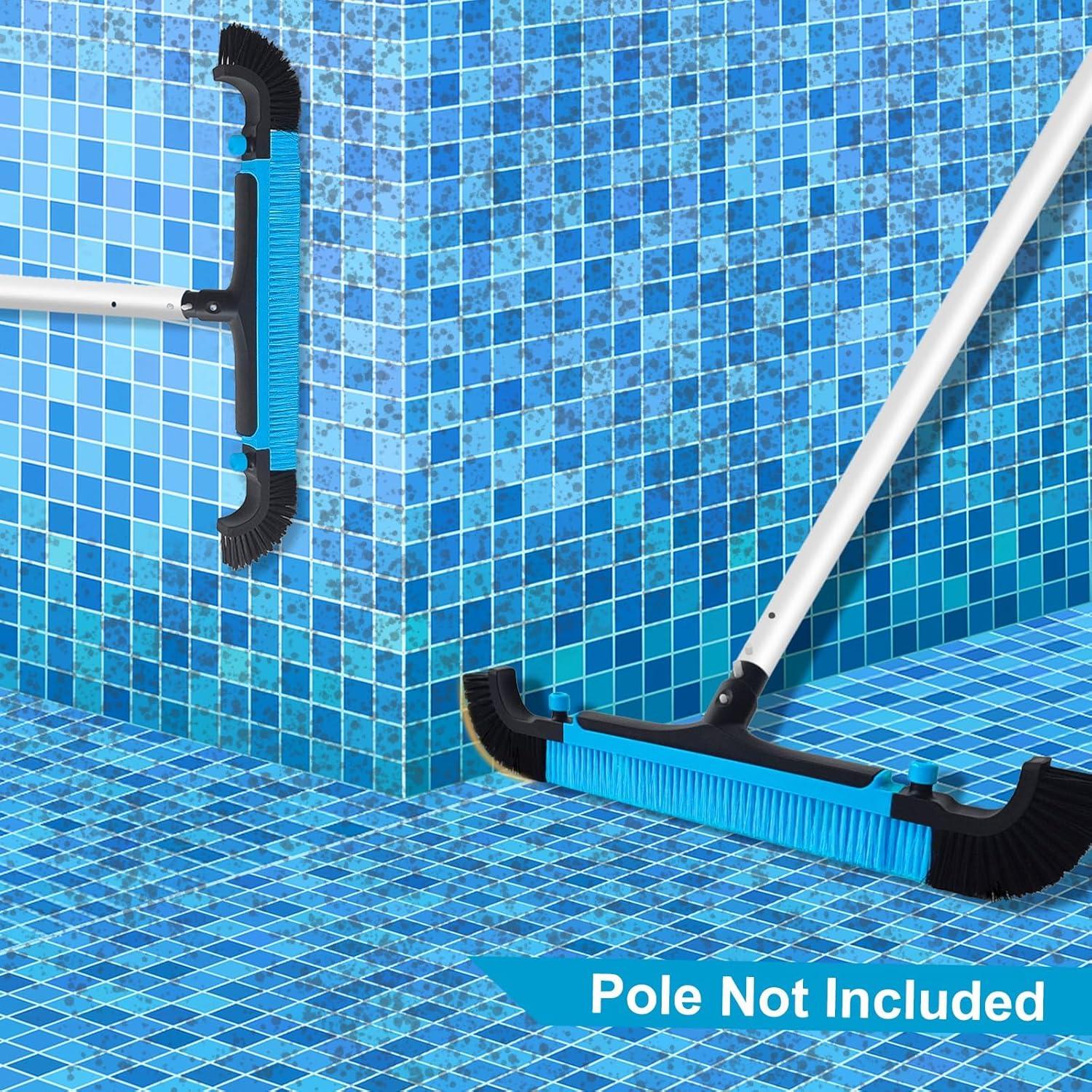 Poolvio 22″ Extra-Wide Pool Brush Head, Heavy-Duty Pool Scrubber Brush with Detachable Corner Brush & Strong Nylon Bristles for Walls & Floors in Above-Ground and Inground Pools (Blue)(Blue)