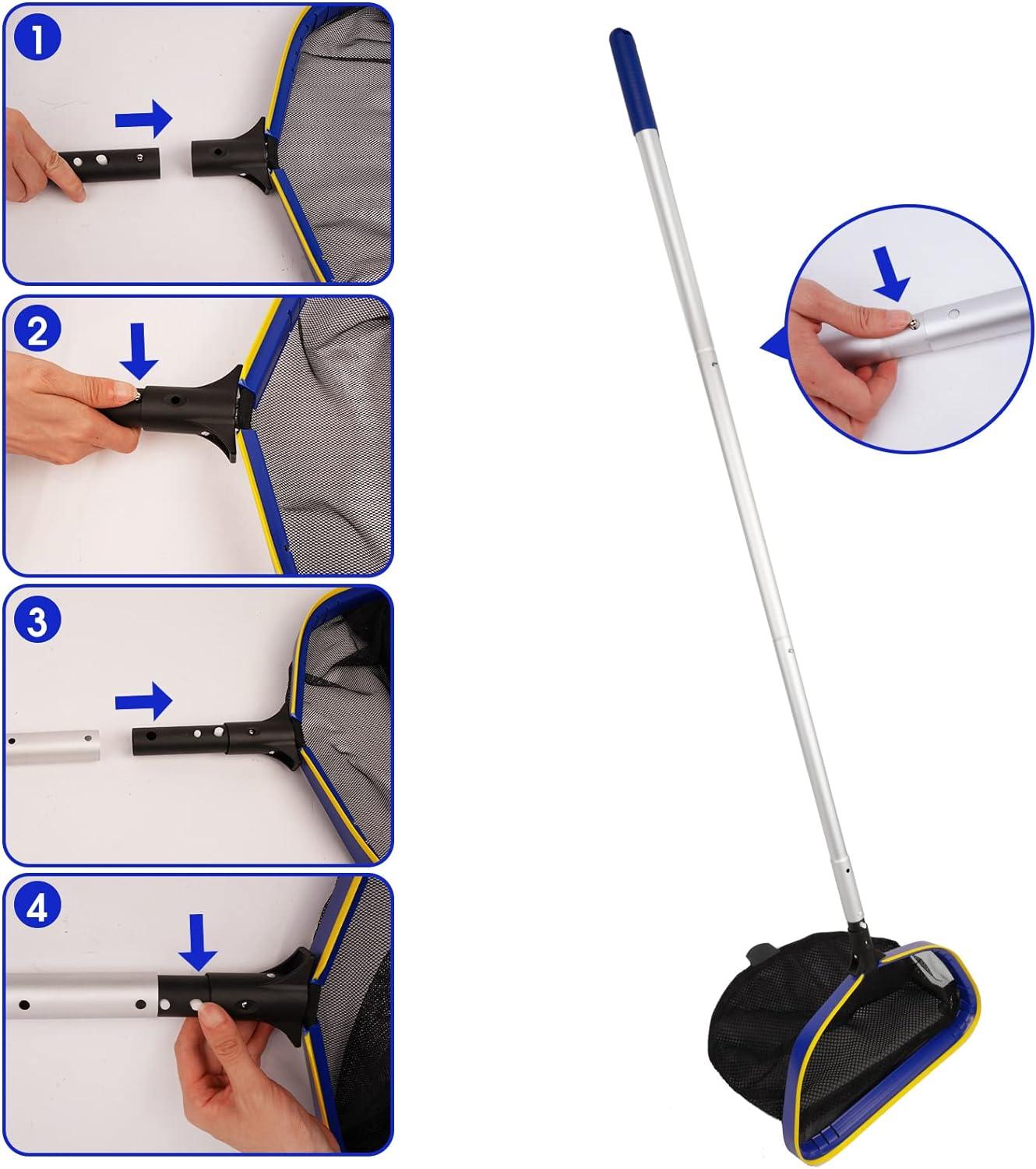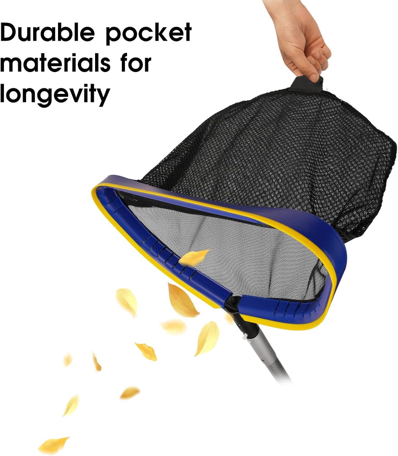 PROFESSIONAL GRADE: Heavy Duty Deep Bag Net with Strong and Sturdy 10 Feet Adjustable Pole. Scoops out leaves, twigs and other floating debris from your swimming pool, pond, tub, fountain or large fish tank. Keep your swimming pool cleaning