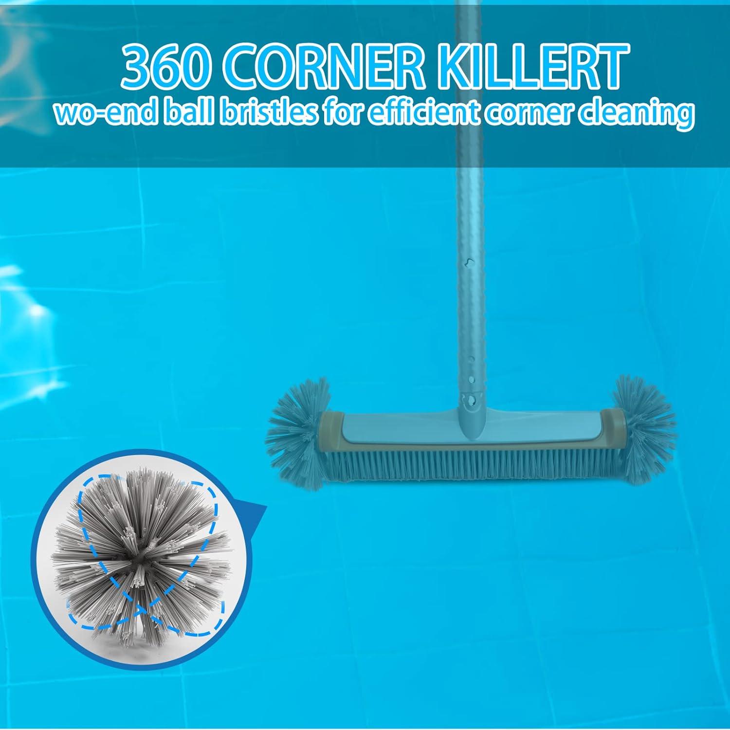 【Fast Pool Cleaning】Updated corner ball bristle in both side can help to clean the corner and Bottom curved bristle design can clean more stains, more easy for clean the pool with less time