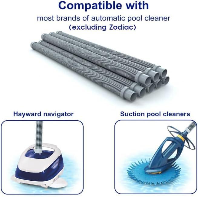 Poolvio Professional Swimming Pool Vacuum Cleaner Hose -1.5” 8 Piece Hoses for Pool Vacuum Extension/Replacement – Compatible with all Major Automatic Swimming Pool Cleaners(Gray)
