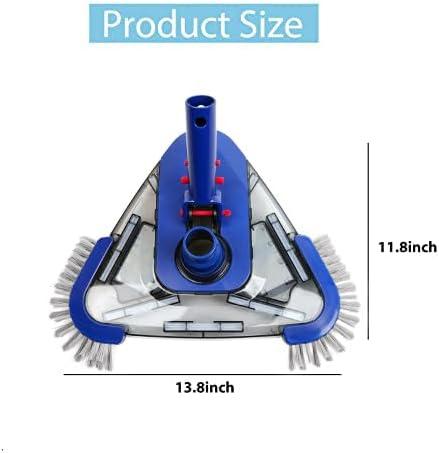 Poolvio Triangular Pool Vacuum Head with Side Brush, Swivel Hose Connection, EZ Clip Handle – Connect 1-1/4″, 1-1/2″ Hose for Inground and Above Ground Swmming Pools